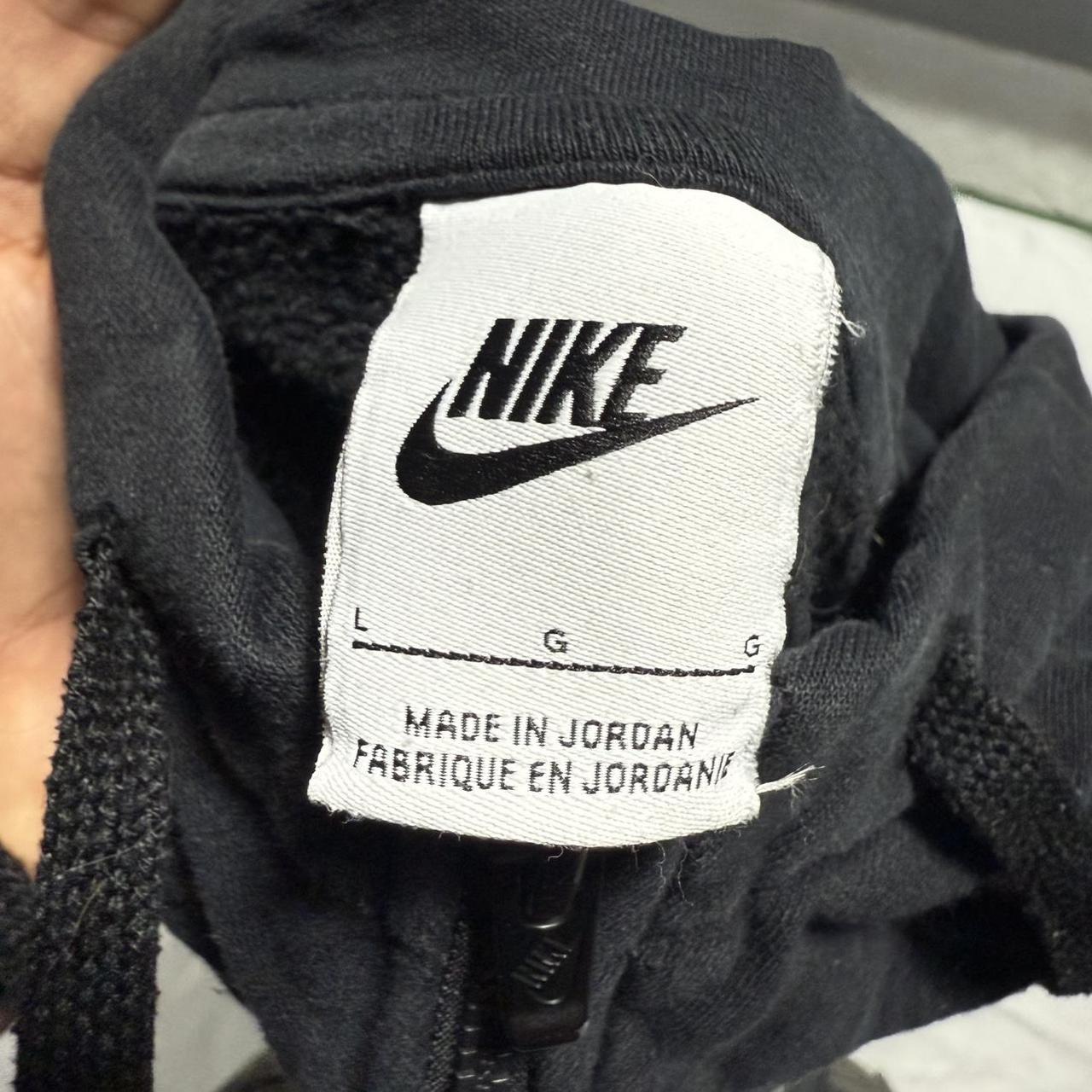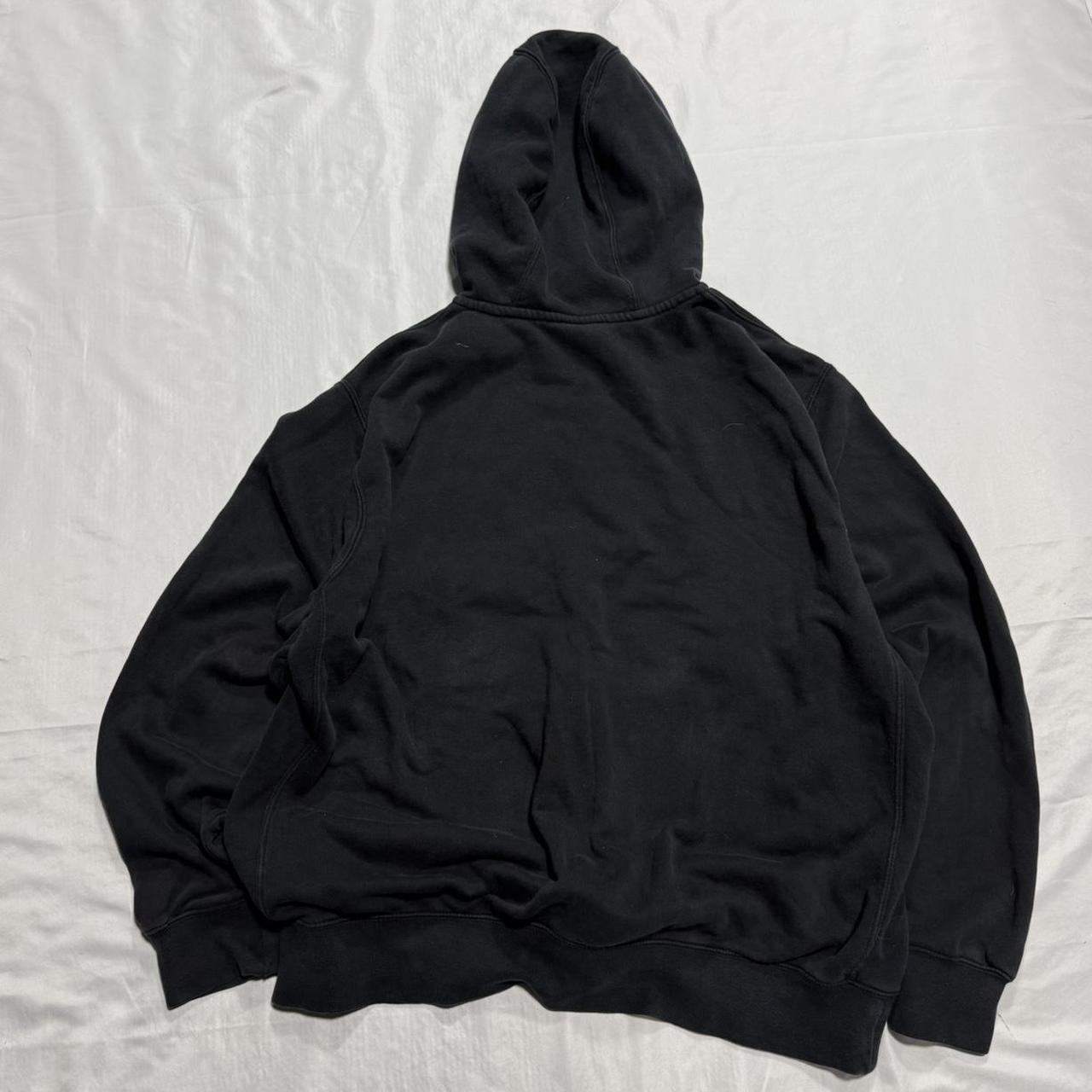Black Nike zip-up hoodie does have distressing on the left side