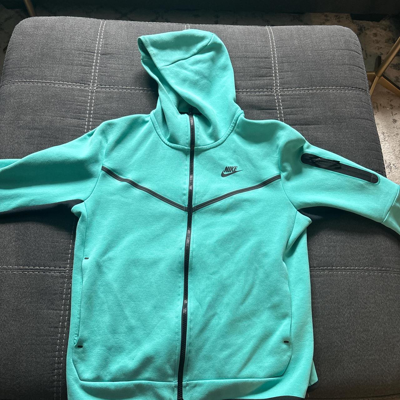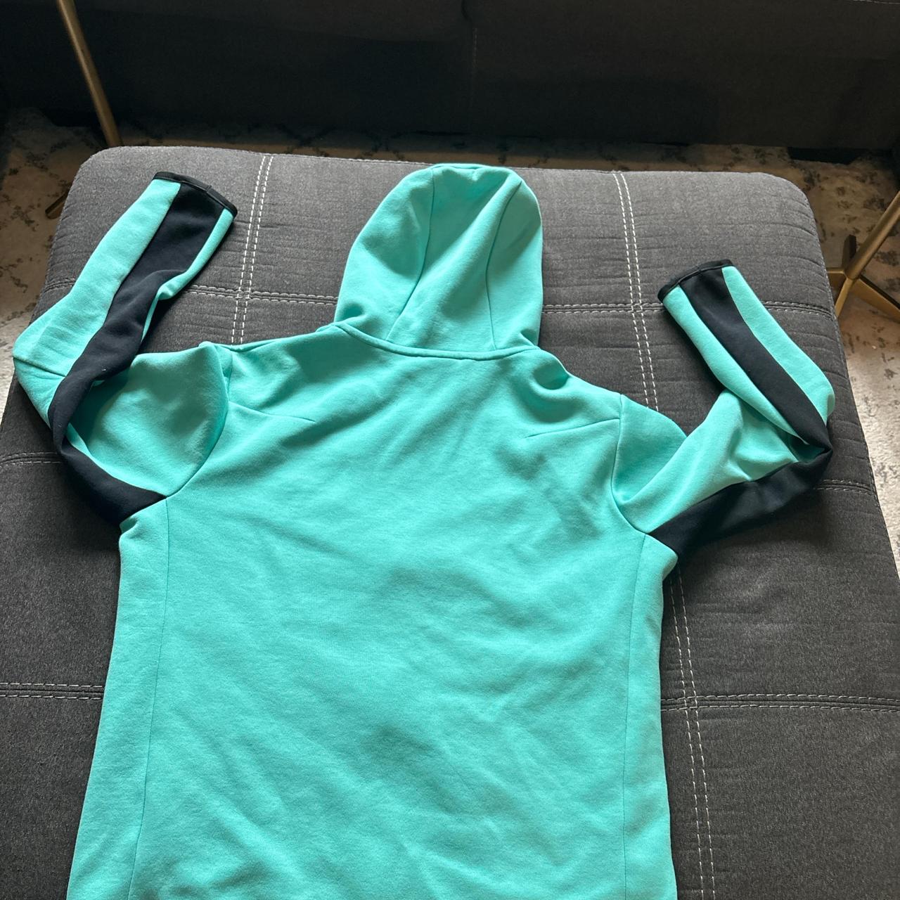 teal green, Nike tech, lightweight, zipper hoodie, minimal wear, clean, athleticwear, casual, sporty, performance.