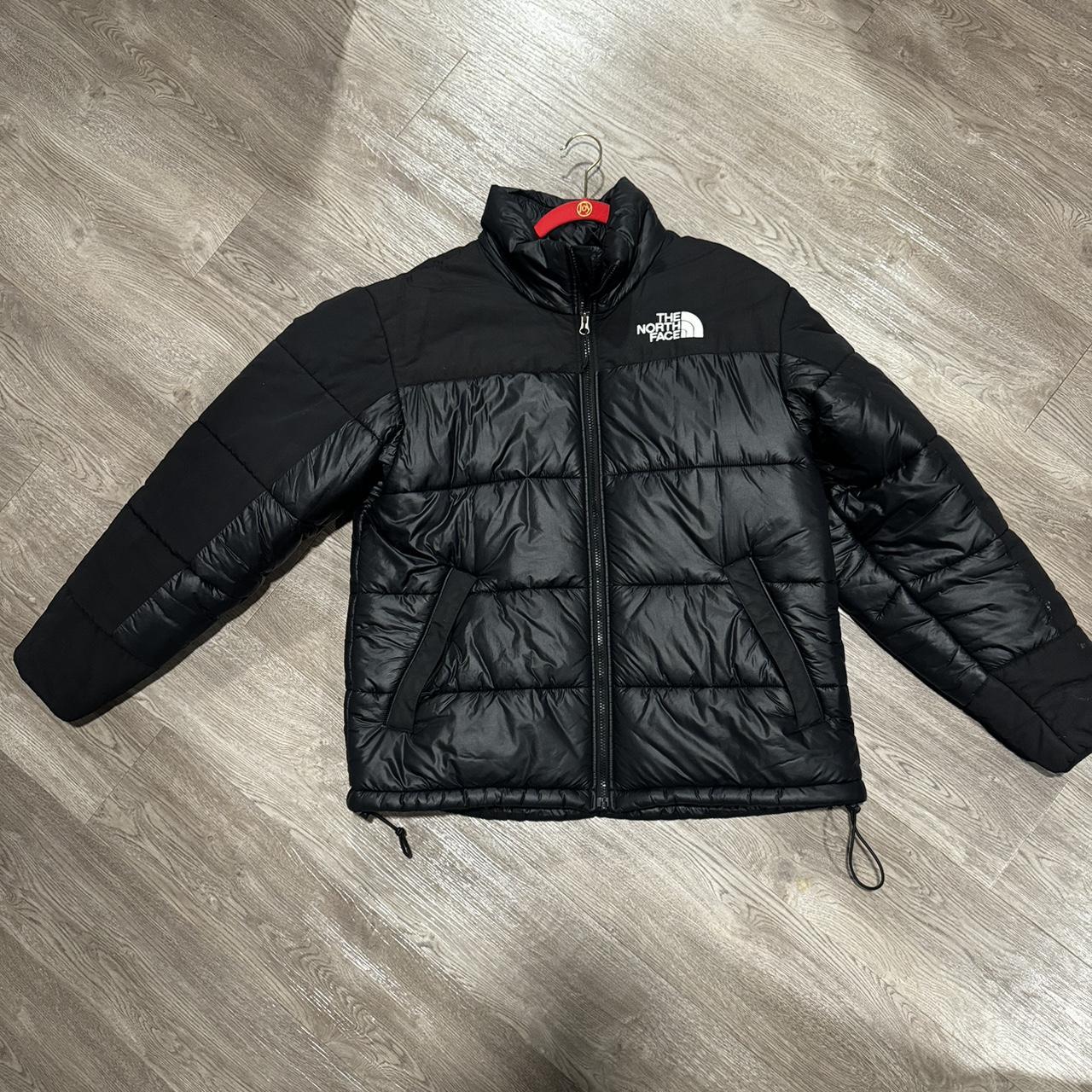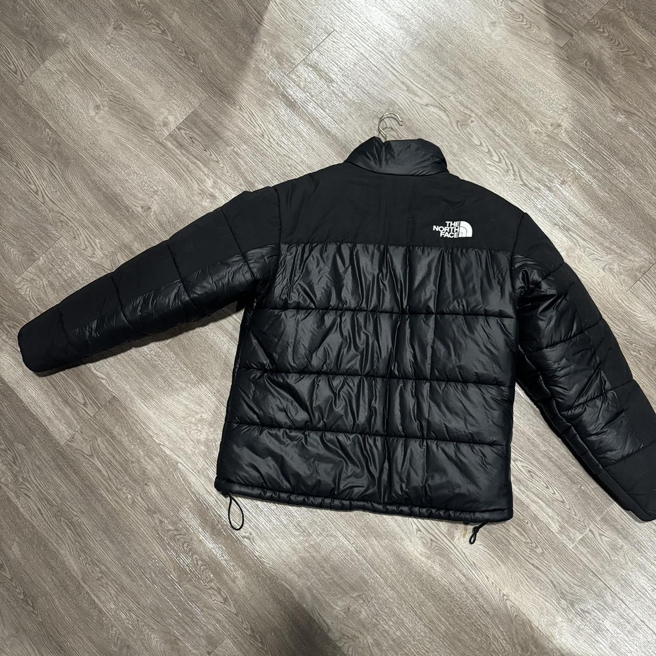 black puffer, insulated jacket, winter coat, outdoor jacket, quilted, sportwear, water-resistant, trendy, cozy, casual.